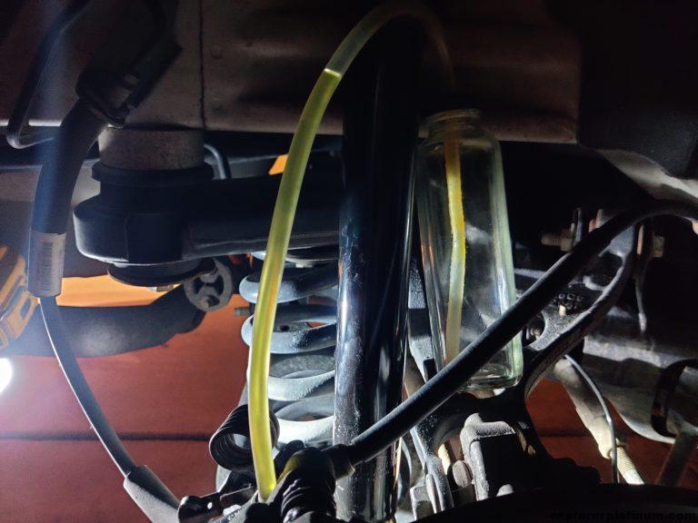 Bleeding the brake fluid on a 2017 Ford Explorer Platinum proved to be a simple task. I was pleased to find that the fluid from all the brake calipers was clean and not contaminated.